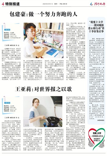 包建豪说,上大学后,除了努力学习外,他想要勤工俭学,继续参加一些志愿活动,帮助需要帮助的人,回馈社会,传递爱心。