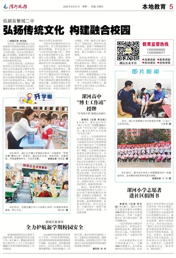本报讯(记者 李文姣)8月29日,漯河高中举行“博士工作站”授牌暨2020年高考“中华英才奖”颁奖仪式,18名优秀毕业生获得“中华英才奖”。