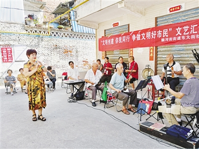9月5日、6日,源汇区顺河街街道东大街社区举办“文明创建 你我同行 争做文明好市民”文艺汇演。