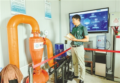 工作人员查看种植基地数据。