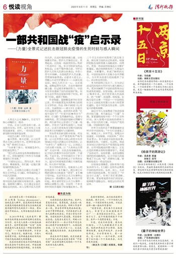在疫情全球肆虐、国际形势日趋复杂的今天,《力量》这部作品聚焦中国抗疫的实际,全面、深入、生动反映中国抗疫故事,有力回答了“中国为什么能”,有利于我们更清晰、更正确、更客观地看待我们的国家,堪称提升道路自信、制度自信的优秀读本。