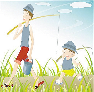 来到河边,我们找了一处人少的地方,岸边杂草丛生,狗尾巴草把我的胳膊“挠”得起了鸡皮疙瘩。准备钓鱼了,我不知所措地看着渔线和鱼竿。爸爸看到我的窘样笑了起来,耐心地给我讲了安装鱼线鱼钩、挂饵抛钩的详细过程。在爸爸的帮助下,我顺利地绑上了鱼线,又将鱼钩和鱼浮一一绑在鱼竿上,小心翼翼地把鱼饵挂在鱼钩上,用力地抛向河中,静静地等着鱼来吃钩。