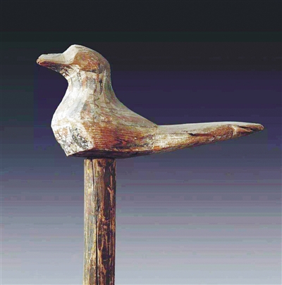 甘肃武威磨嘴子汉墓出土的彩绘木鸠杖。