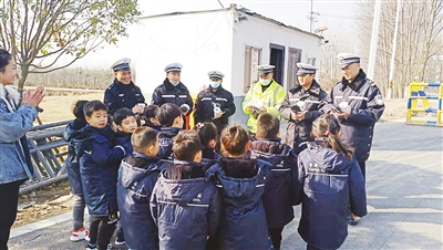 十二月二十一日中午,漯河市宇华实验双语幼儿园的小朋友在老师带领下,给执勤的市公安局交通管理支队西城区大队民警送去了热腾腾的饺子和奶茶。见习记者 何 爽 摄
