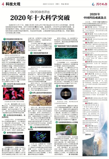 当地时间12月17日,美国《科学》杂志公布了其评选出的2020年十大科学突破,其中新冠疫苗的研发居于榜首,另外9项研究则囊括艾滋病、室温超导、CRISPR治疗遗传性疾病、全球变暖等多个领域。《科学》杂志在文章中表示,尽管2020年全球多国饱受新冠肺炎疫情重创,但科学家们仍竭尽所能开展研究,而这些研究成果,正是疫情中绽放出的希望之花,将指引着他们未来做出更大贡献。